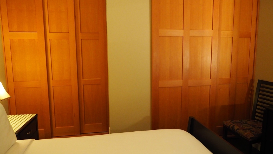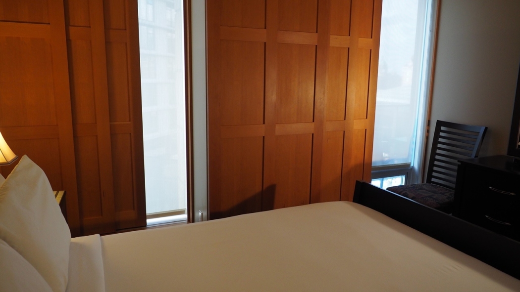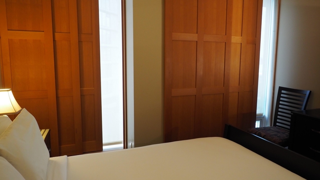 - Wood sliding panels to block light & sound